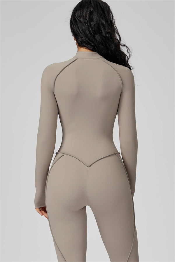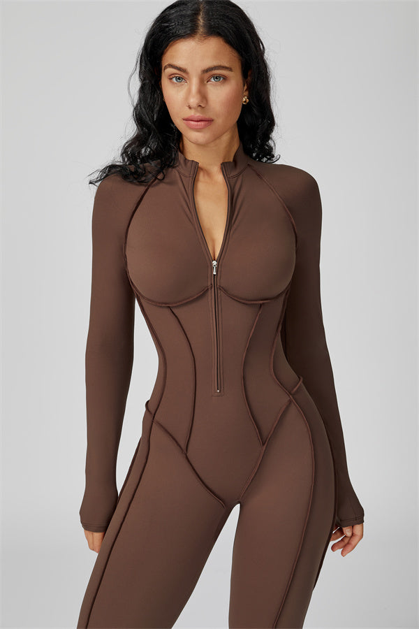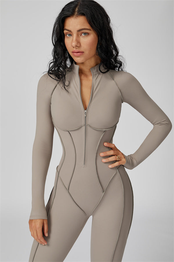 Sleek, sculpting, and effortlessly functional. The Anew Zipper Jumpsuit is designed to hug your curves and move with you. Its one-piece silhouette and half-zip detail offer both style and convenience, making it a versatile go-to for any activity.