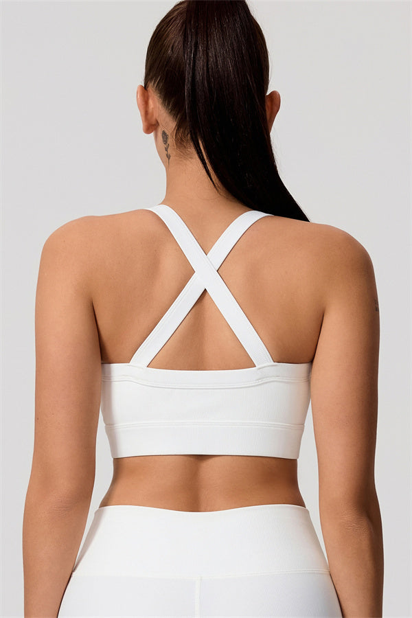 Cross-back design for a chic look that highlights the butterfly bones
