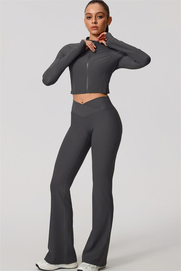 The Daze Zip Jacket Sports Bra Flared Leggings 3-Piece Set