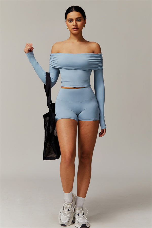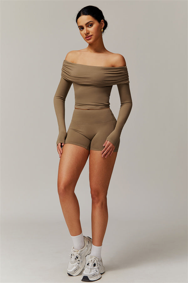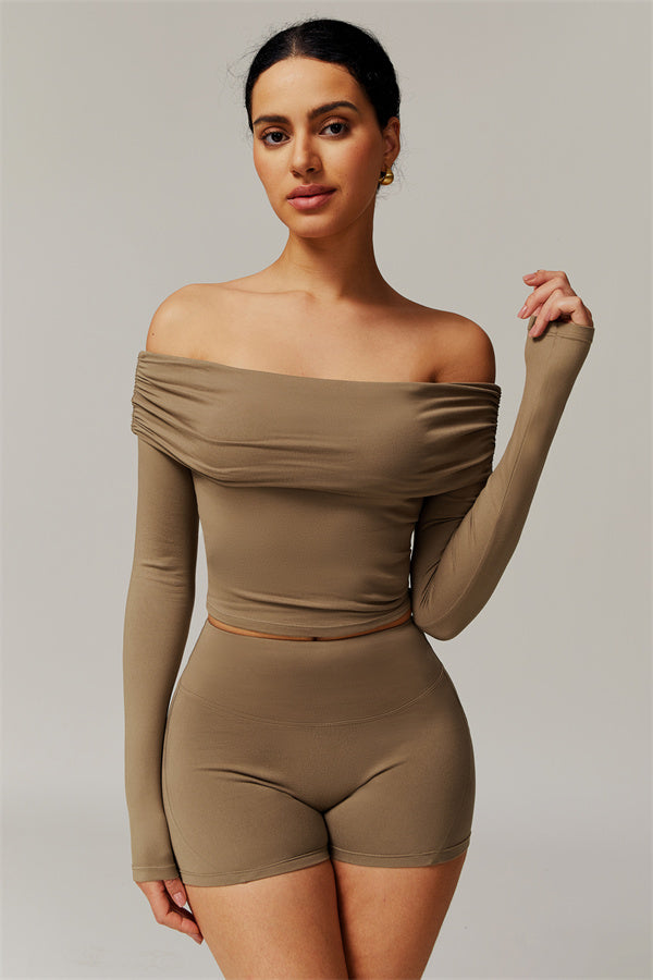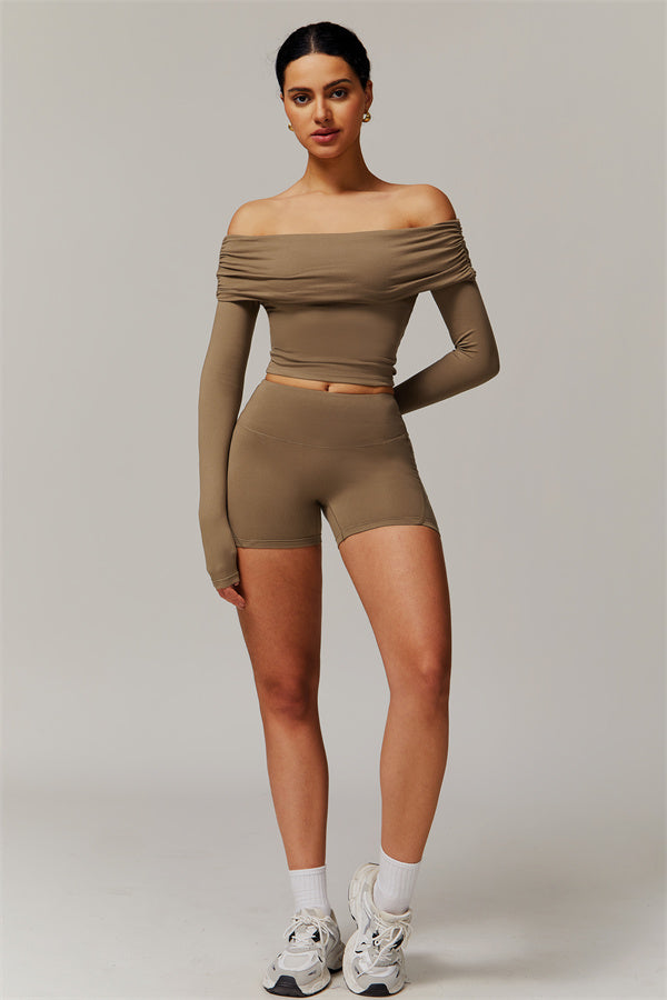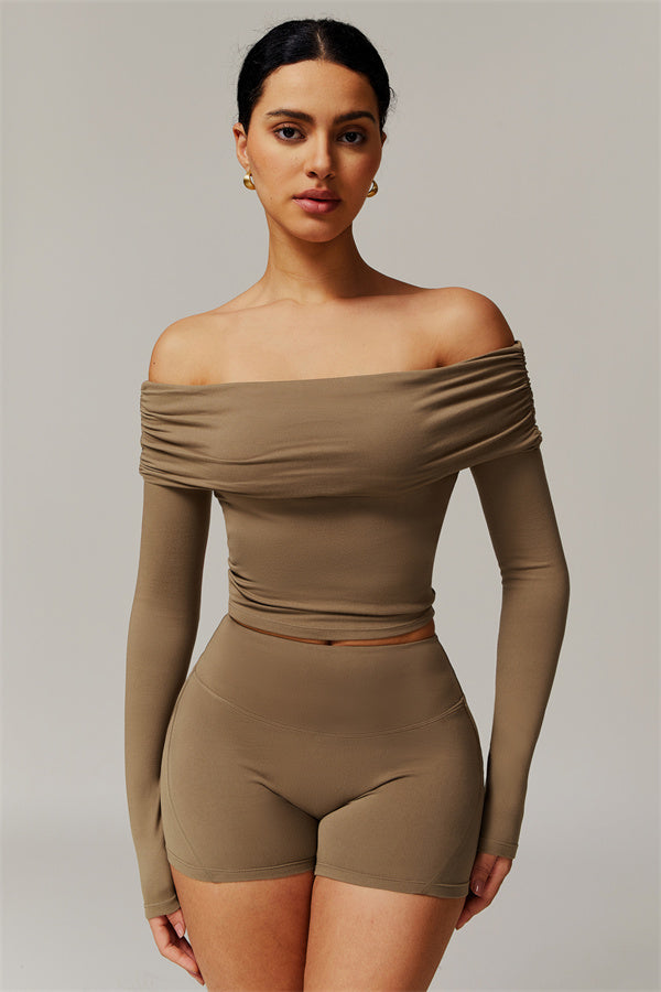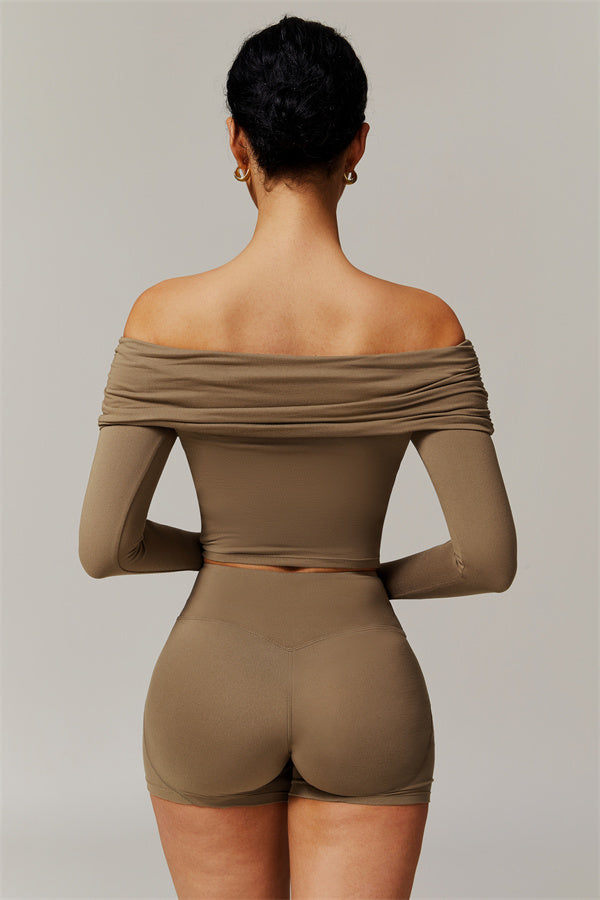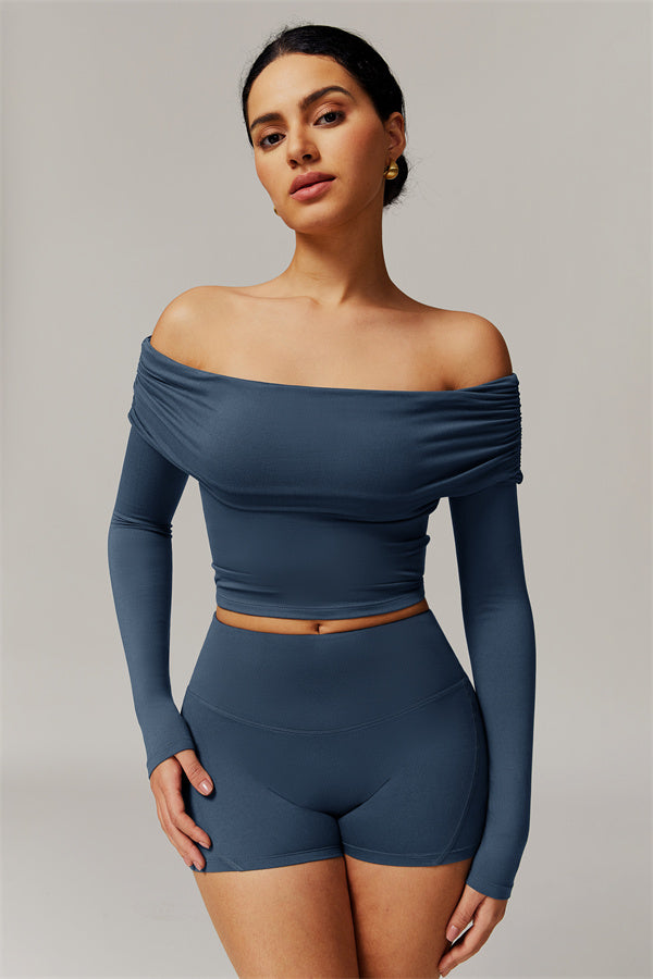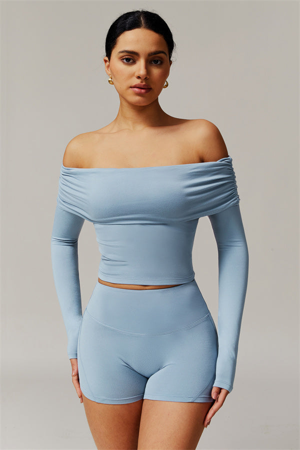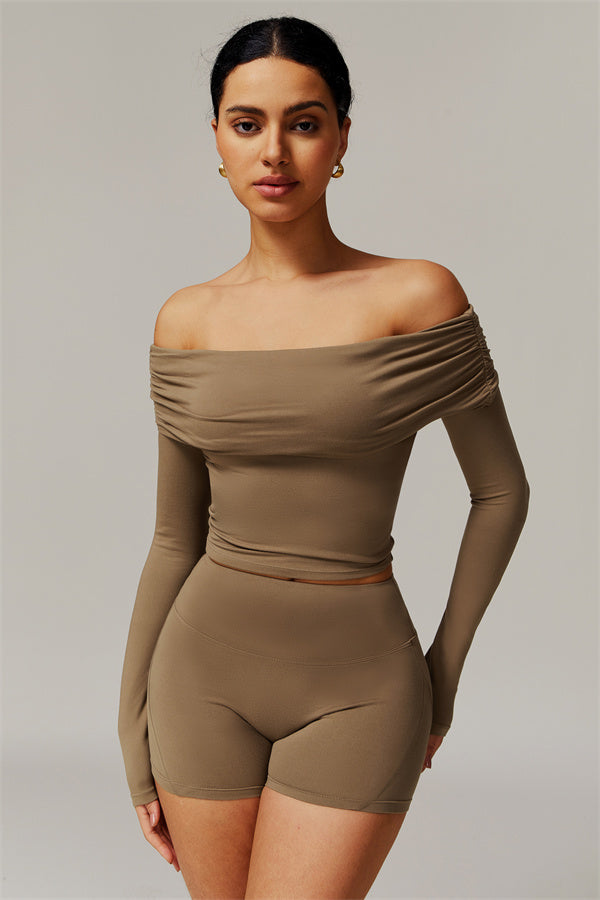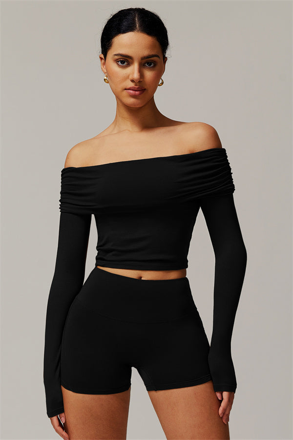 Effortlessly elegant and designed for movement, The Luxe Ruched Long Sleeve Off-Shoulder Top brings together sophistication and functionality. With its off-shoulder design and ruched detailing, this top creates a sleek, feminine silhouette while offering the perfect balance of support and style. Whether you're heading to a workout or styling it for a casual outing, this versatile piece is designed to make a statement.