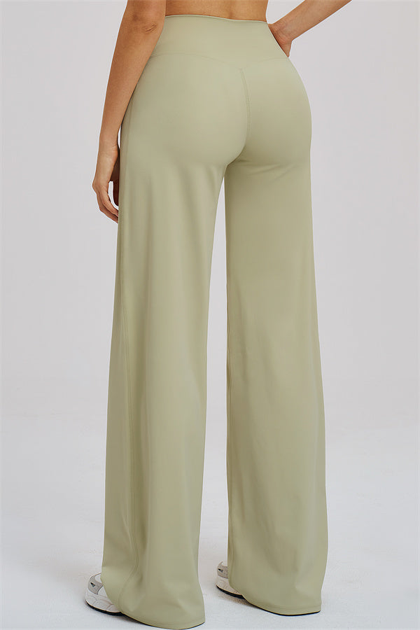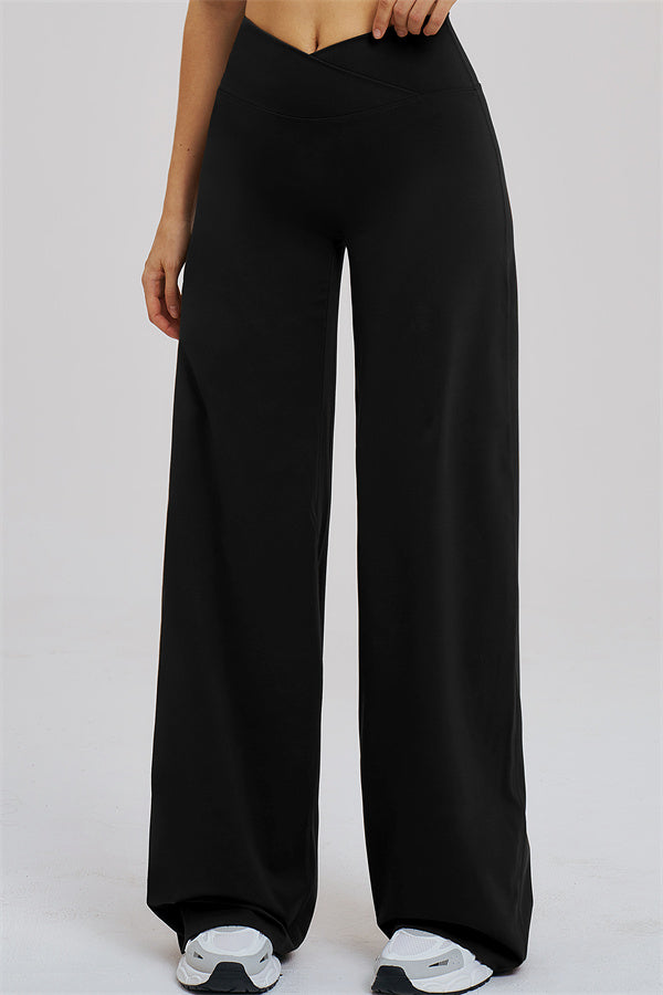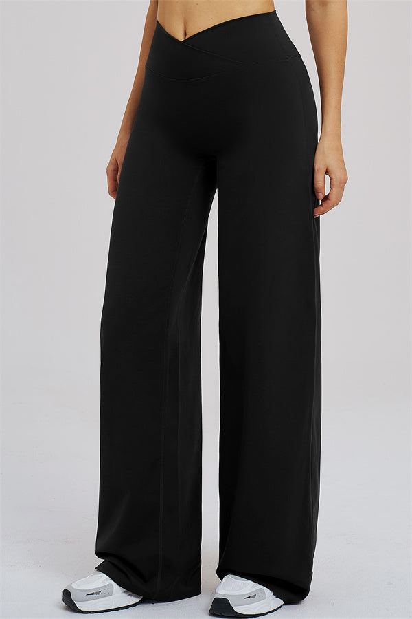 Draped wide-leg design hides imperfections while elongating the legs
