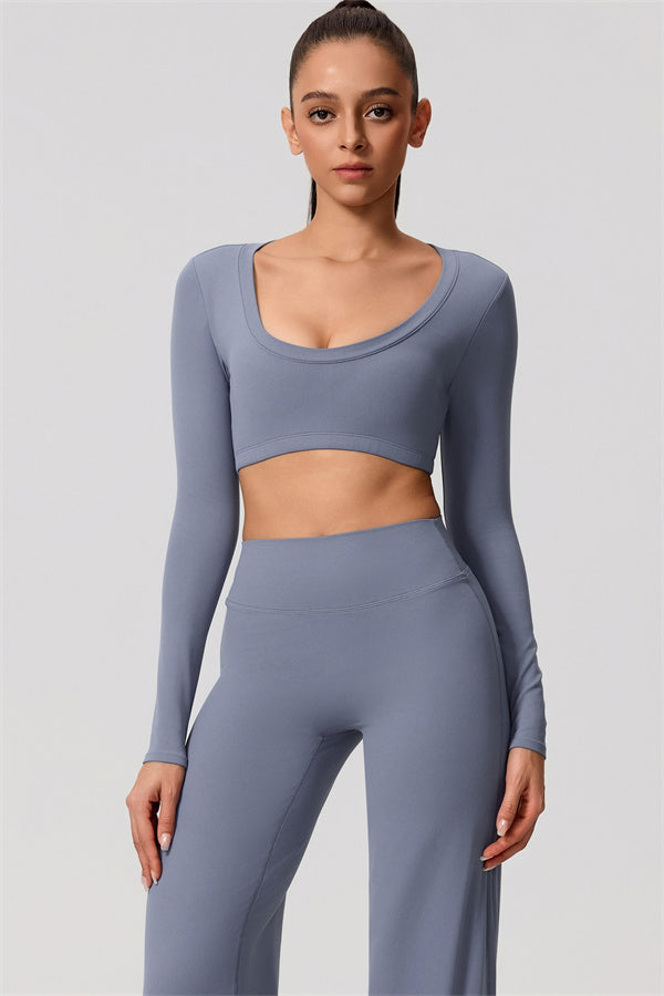 A stylish and functional crop top that combines elegance with comfort, perfect for both workouts and casual wear.