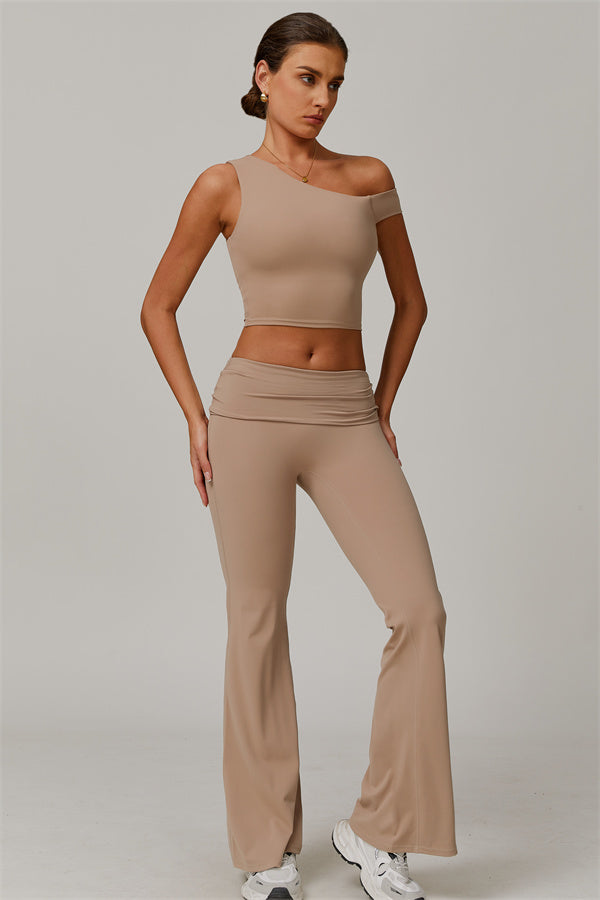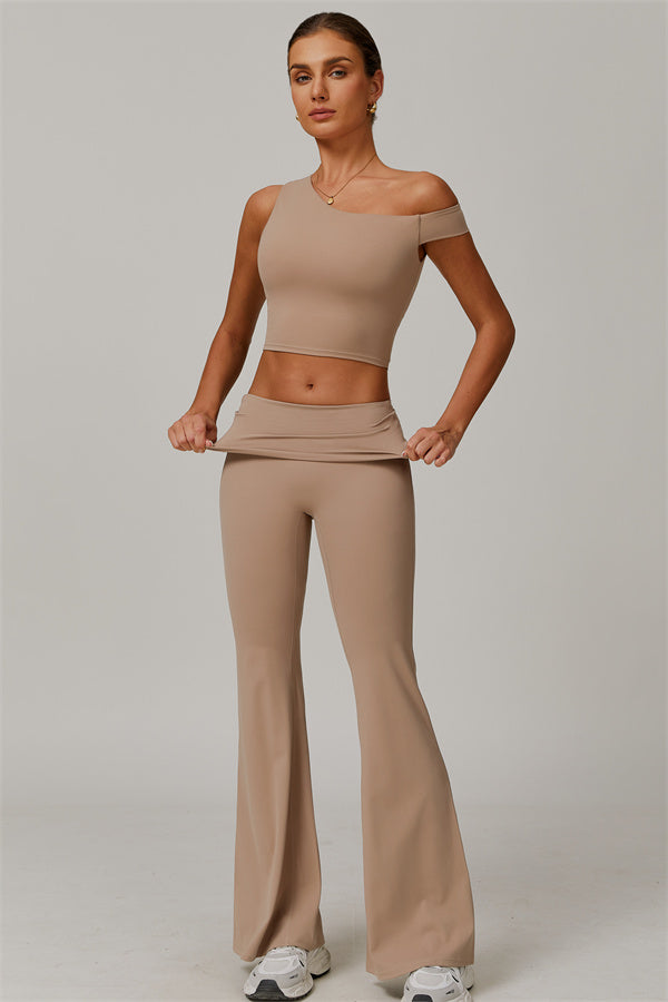 A bold silhouette meets everyday comfort in The Pearl Set, featuring an eye-catching one-shoulder crop top and ultra-flattering flared leggings. Designed for workouts, errands, and everything in between, this set moves with you and highlights your best lines, all while using recycled, eco-conscious materials.