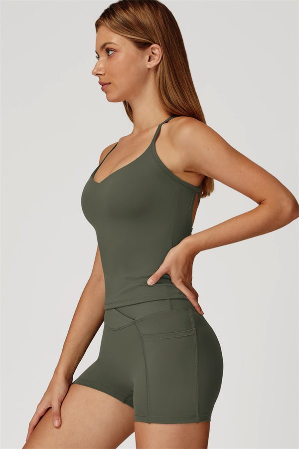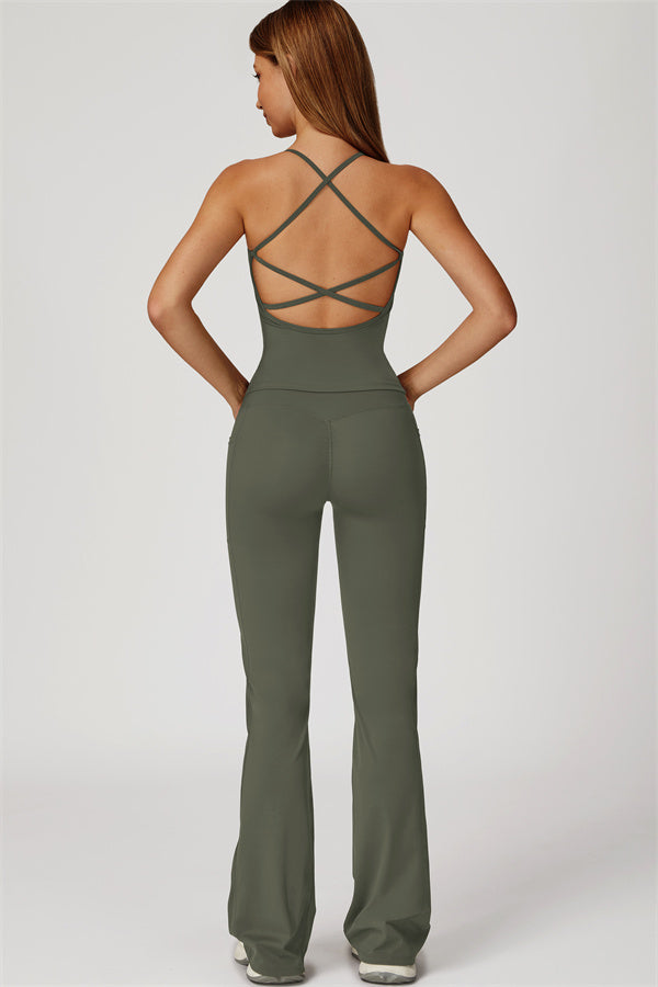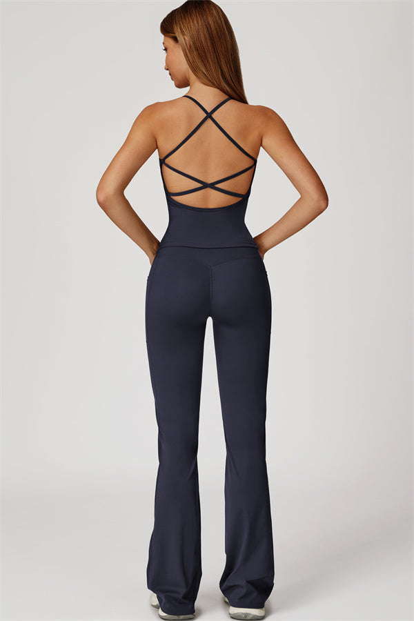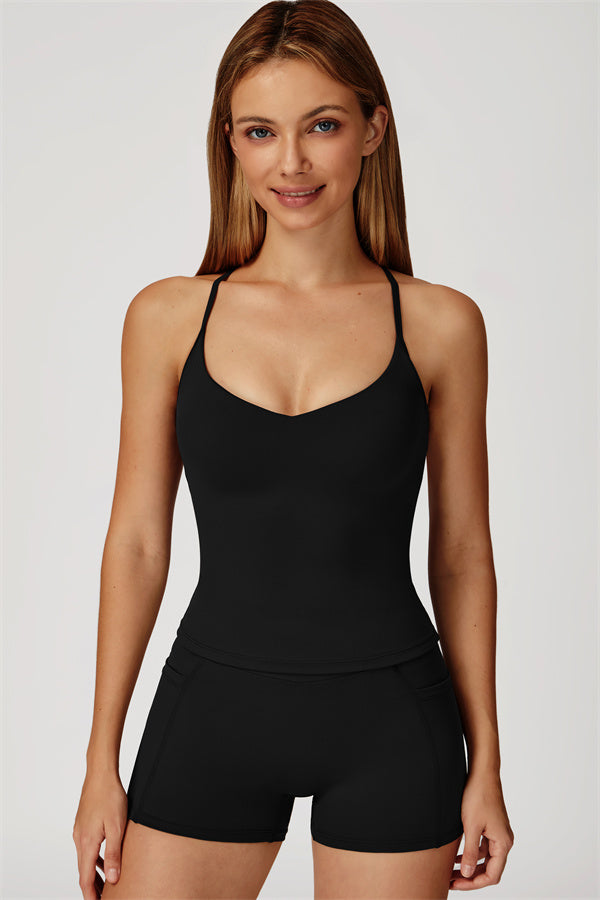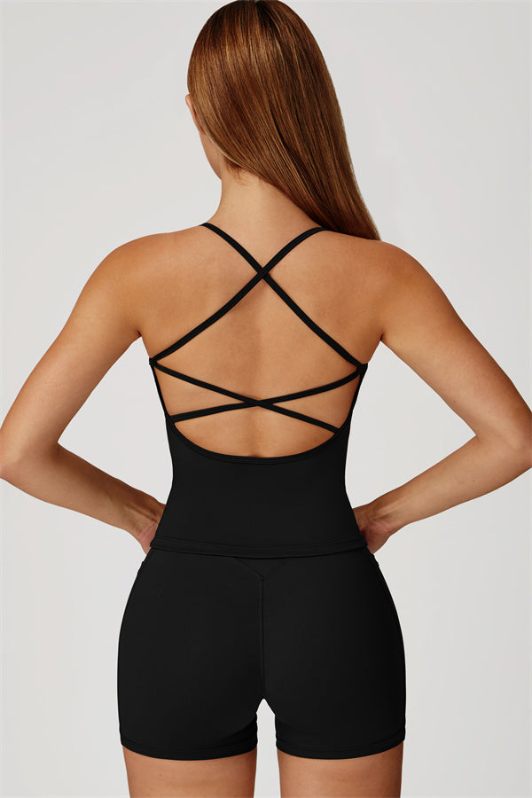 Thin cross-back straps with cut-out design for a graceful back silhouette