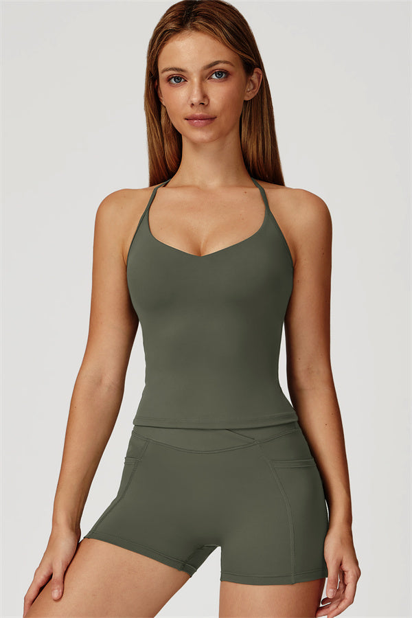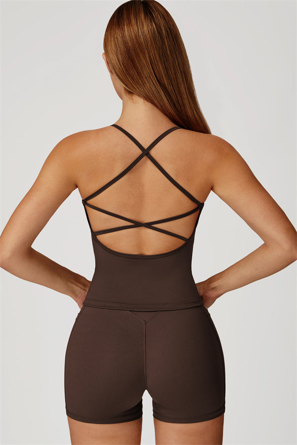 Thin cross-back straps with cut-out design for a graceful back silhouette