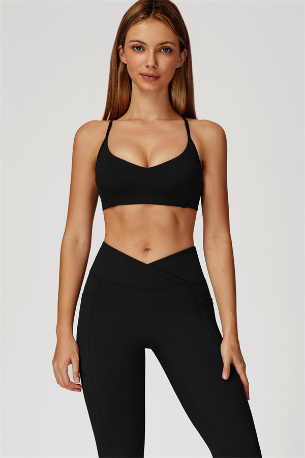 Y-shaped open-back design for full shoulder mobility and a graceful butterfly-bone silhouette