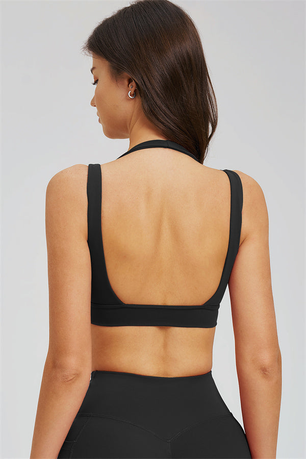 Square-shaped open back reveals the shoulder blades for a flattering look