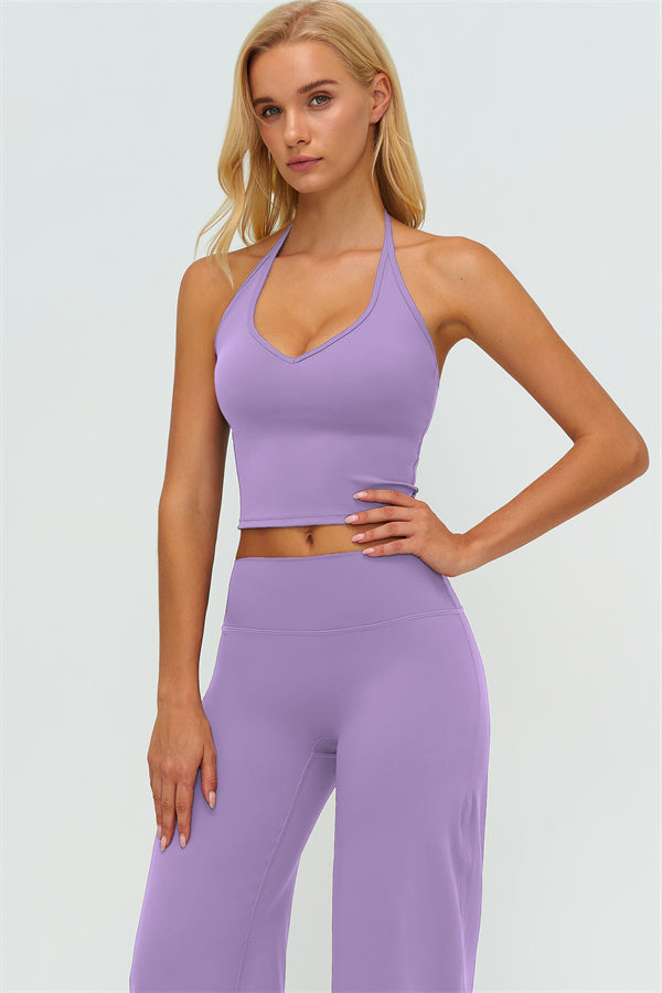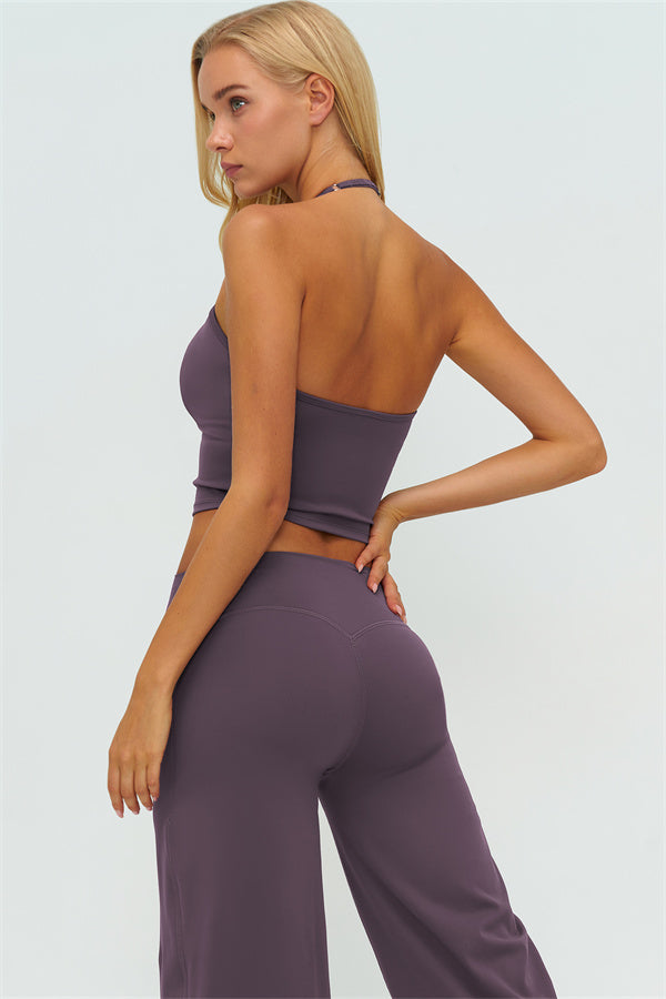 The Twirl Halter Tank Top & New Straight Leg Pants 2-Piece Set combines effortless style with breathable comfort, creating a flattering and versatile look perfect for workouts or casual wear.