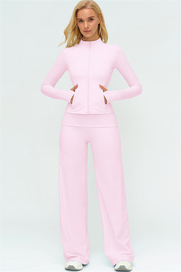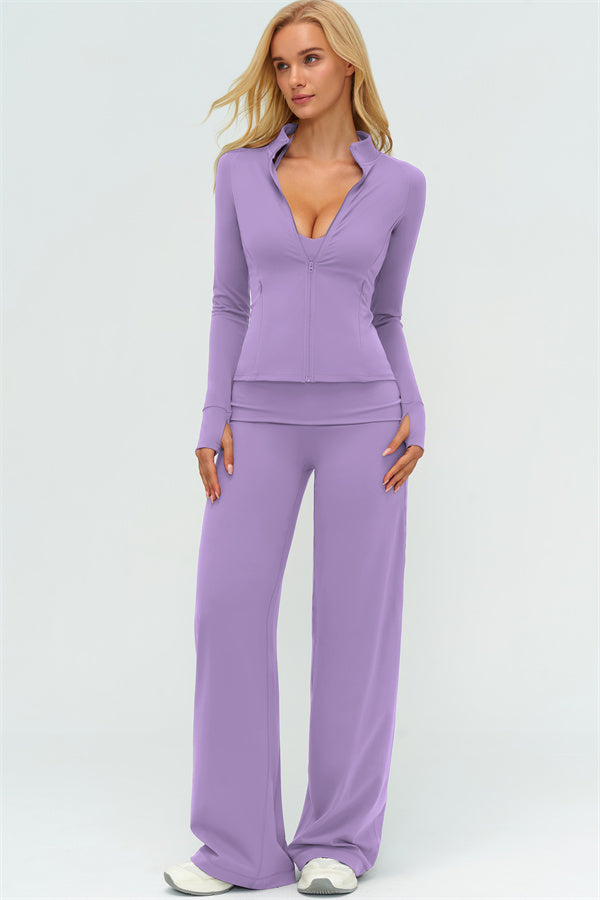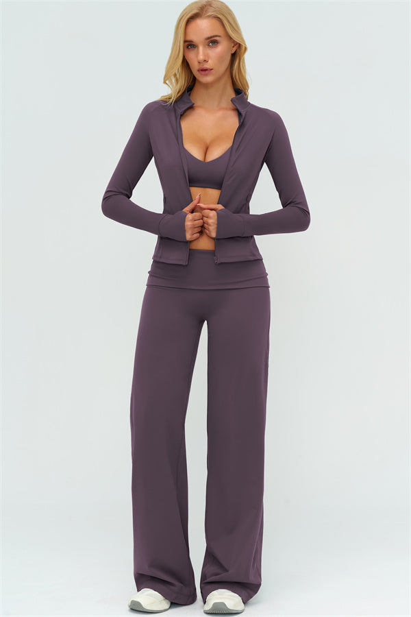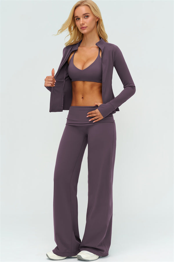 The Twirl Zip Jacket Sports Bra Straight Leg Pants 3-Piece Set