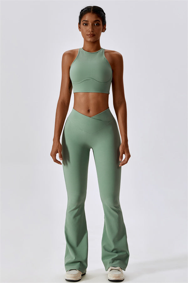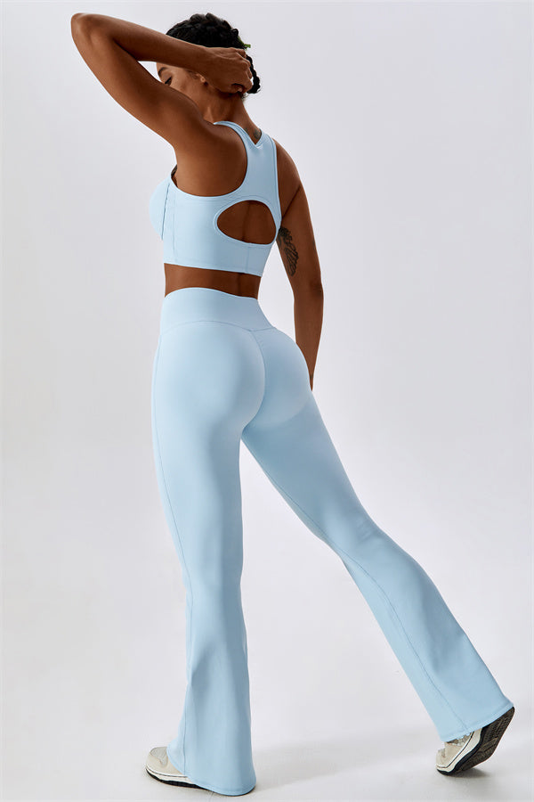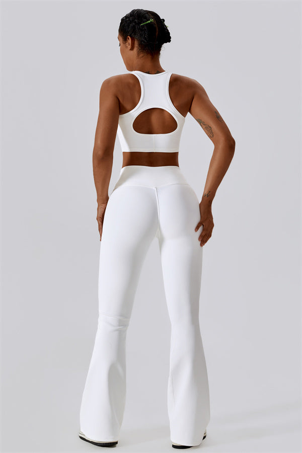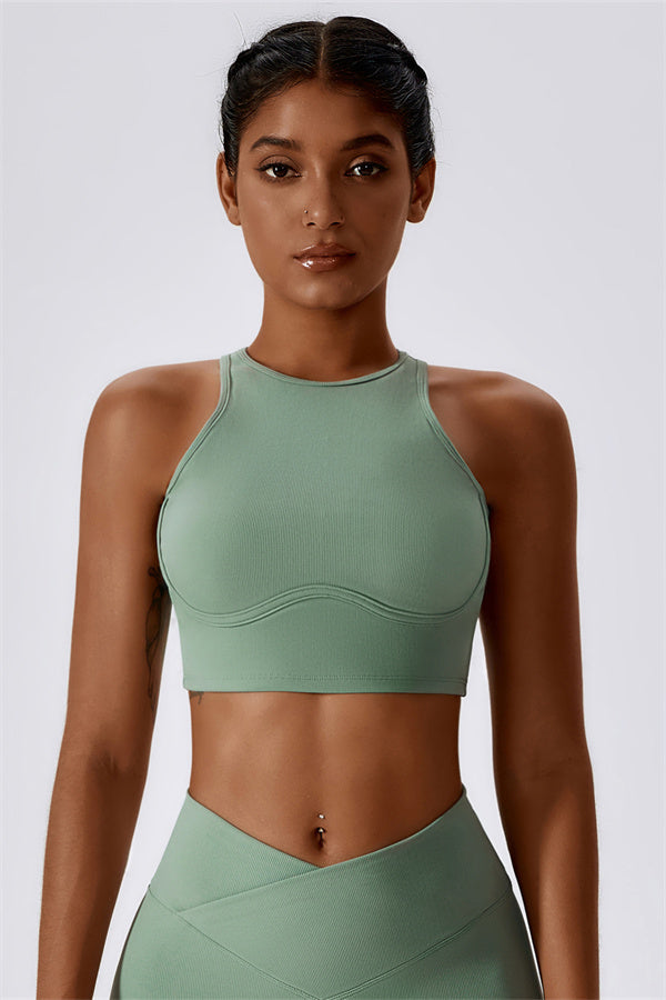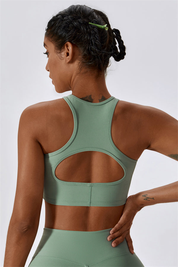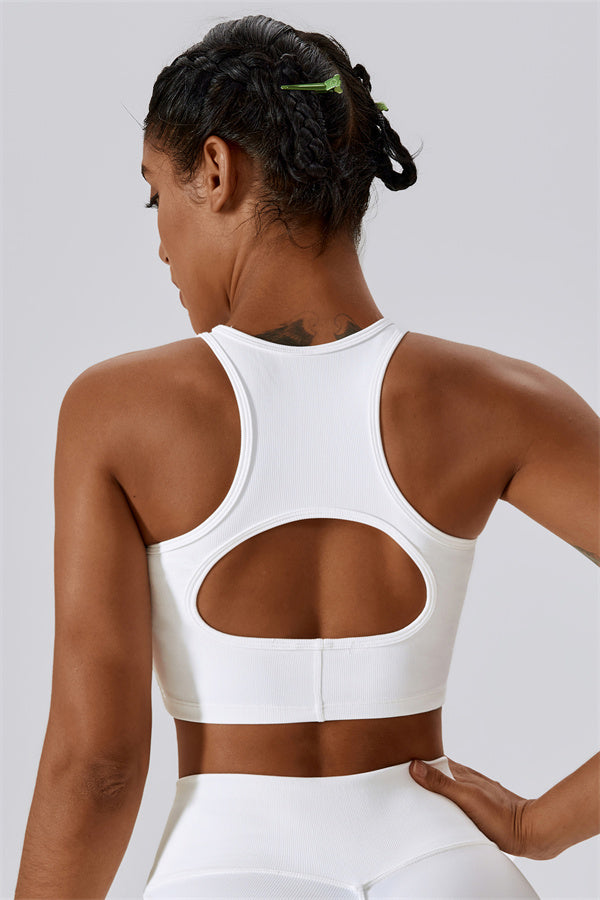 Featuring a vest-style front with a classic round neckline. The racerback design beautifully enhances your back's contours, ensuring you look great while you work out. Made from a durable fabric that resists deformation, this bra offers four-way stretch for optimal movement.
