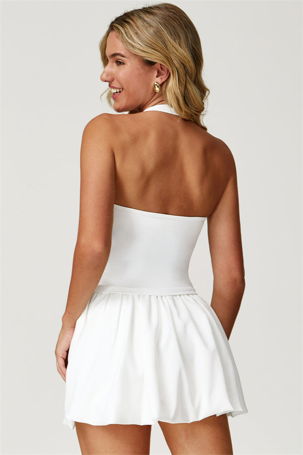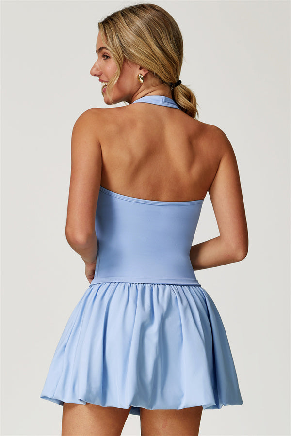 Bring fresh style and comfort to your wardrobe with the Blooming Set. Featuring a chic halter top and a playful tennis skirt, this set is designed for both sport and style.