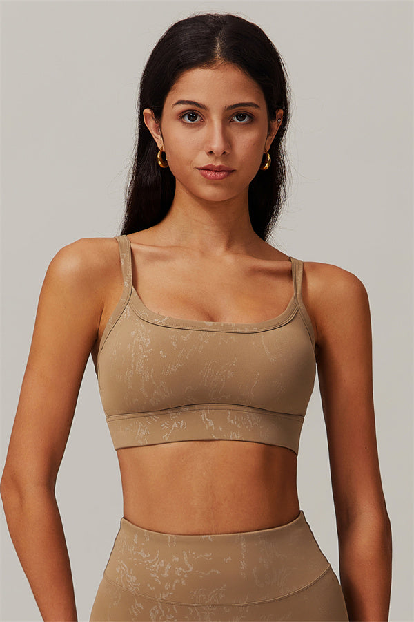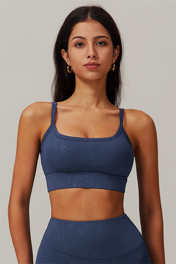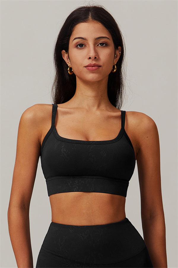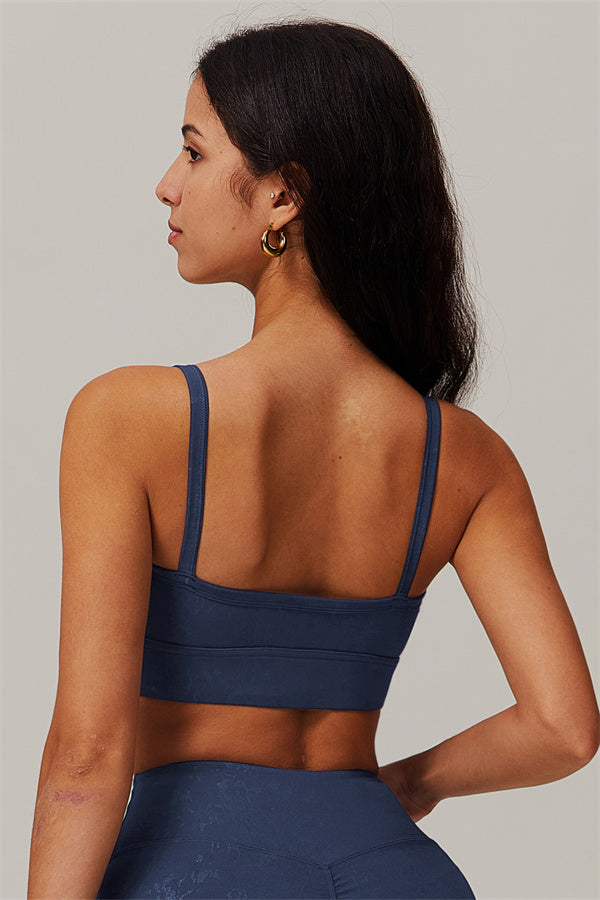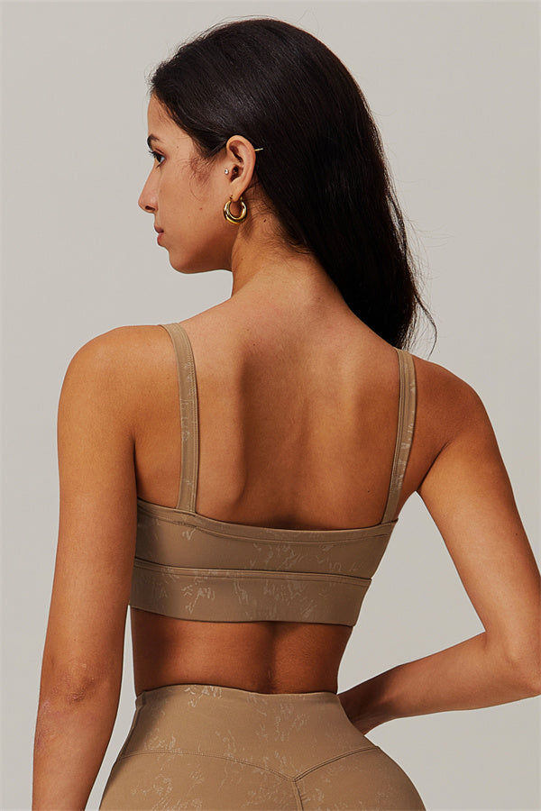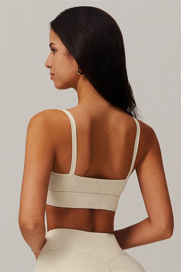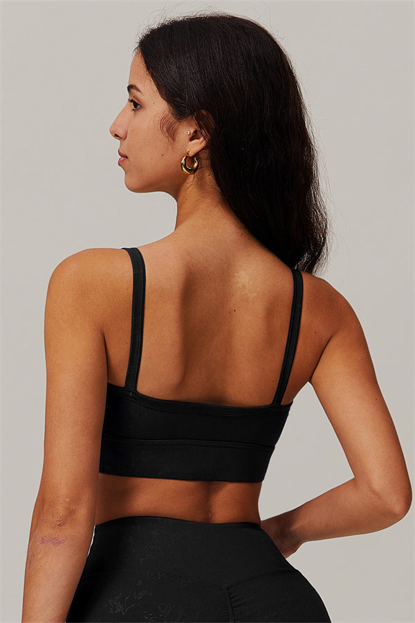 This sports bra is designed to combine comfort, support, and a chic aesthetic. With a widened elastic band at the hem, it provides a secure, non-slip fit that supports you through any workout. The removable padding allows for customizable comfort, making this bra versatile for both active wear and casual outings.