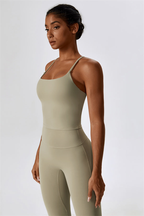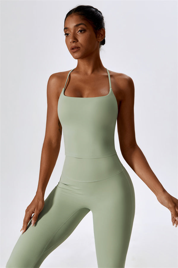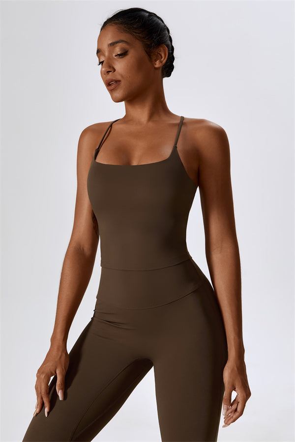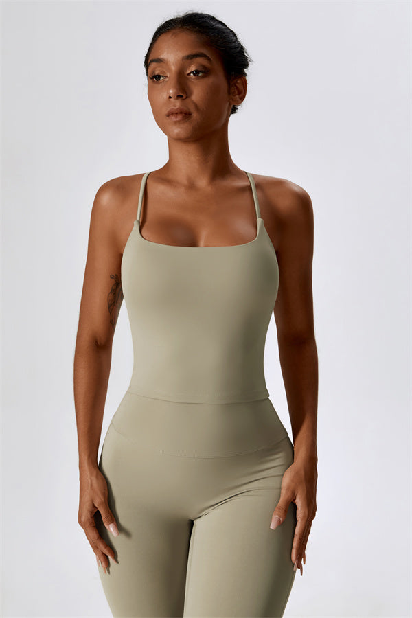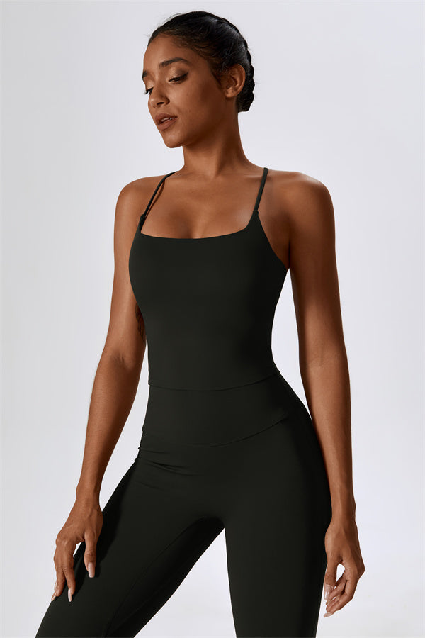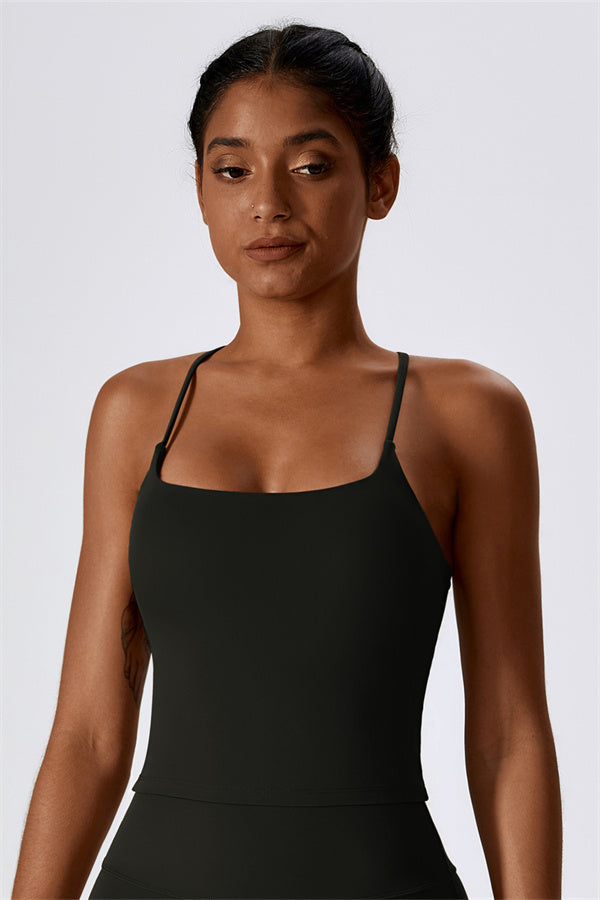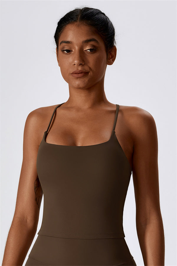 Introducing our extended-length sports bra, designed for a comfortable fit that provides gentle compression to enhance your waistline. The stylish cross-back straps beautifully showcase your back's graceful curves, adding a touch of elegance to your activewear collection.