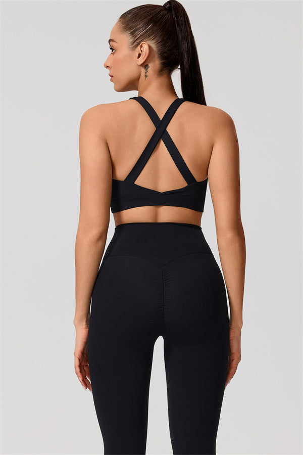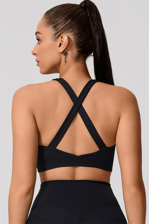 Dual shoulder straps with cross-back design reveal a beautiful butterfly bone