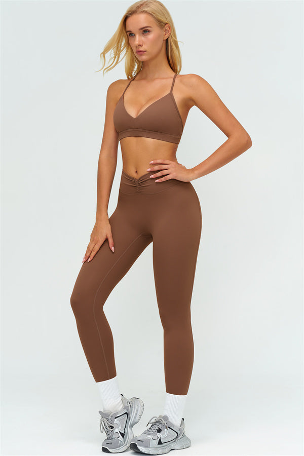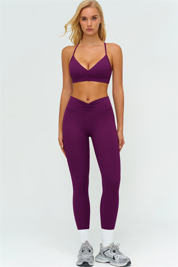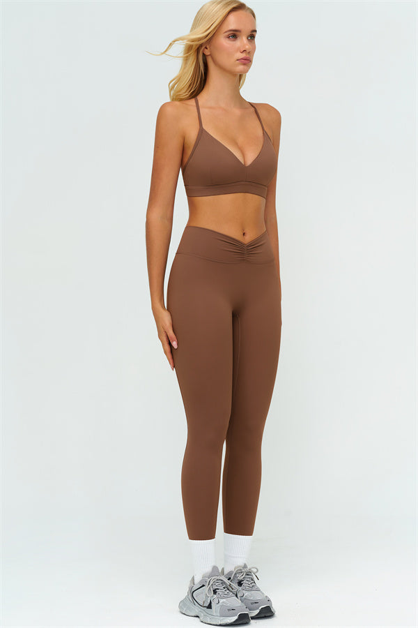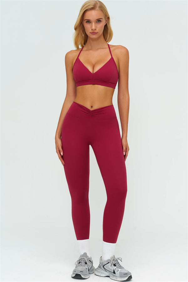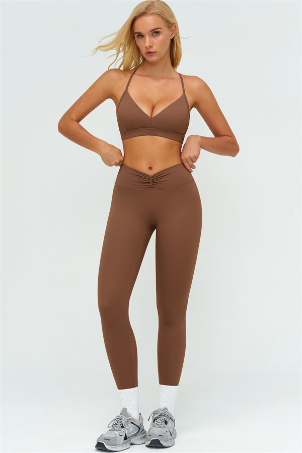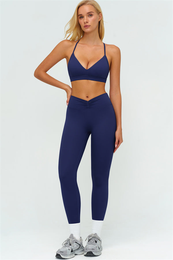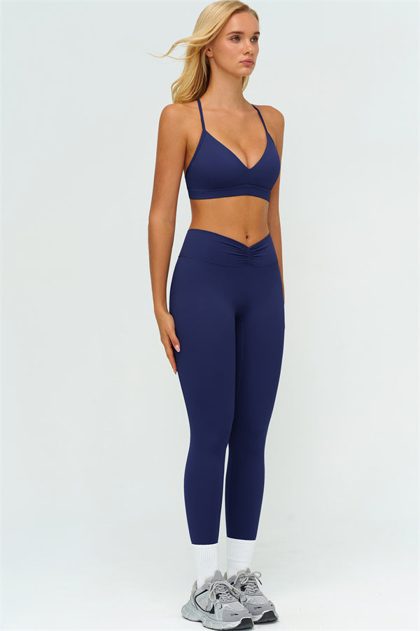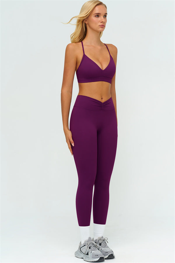 Elevate your workout wardrobe with the Lushness matching set. The Y-Back Sports Bra features a flattering V-neckline and breathable Y-back design, highlighting your collarbones and beautifully sculpting your shoulders. Removable chest pads allow for a bra-free fit, making it perfect for both exercise and casual streetwear. The high-waist Lushness Leggings are designed with front ruching to secure and shape your waist, plus sculpted seams to enhance your curves while offering a smooth, comfortable fit for unrestricted movement.