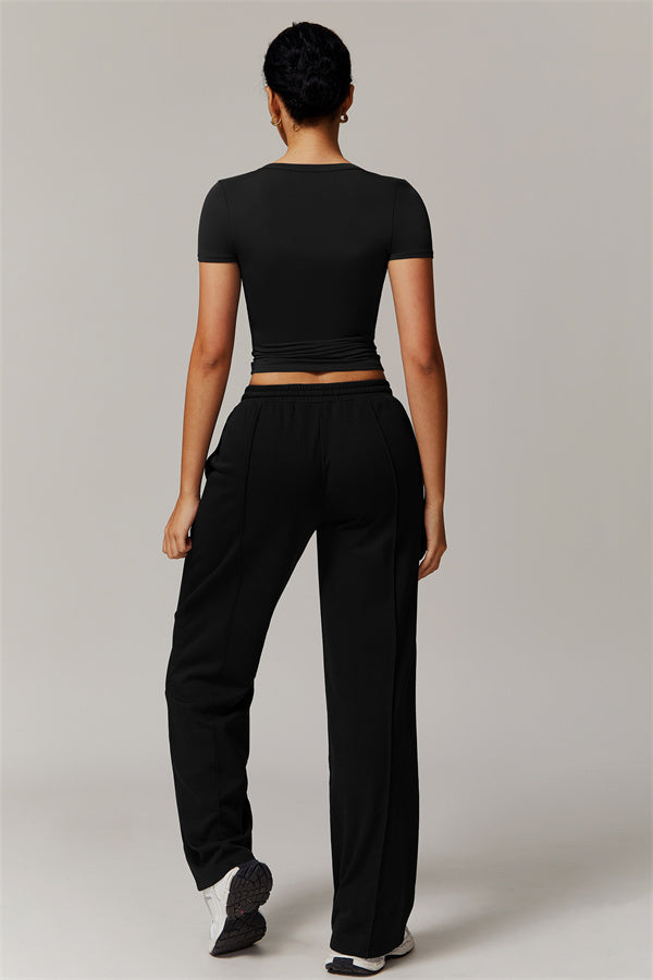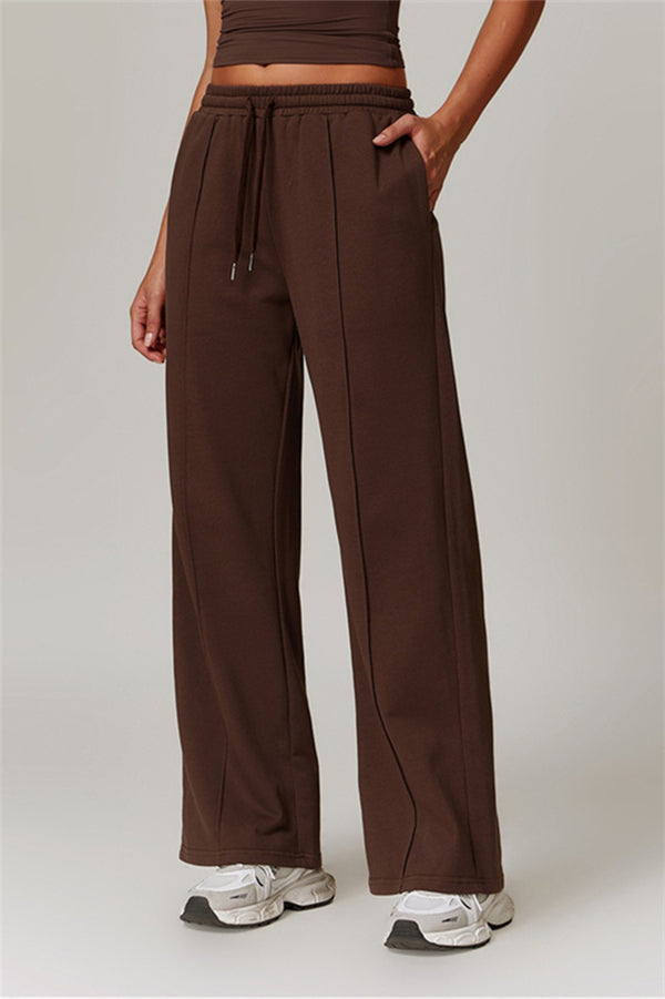 Featuring a stylish straight-leg and wide-leg design that pairs effortlessly with any outfit. The elastic waistband and coordinating drawstring provide easy wear and adjustable comfort. With side pockets for convenient storage, these pants are perfect for both workouts and casual outings.