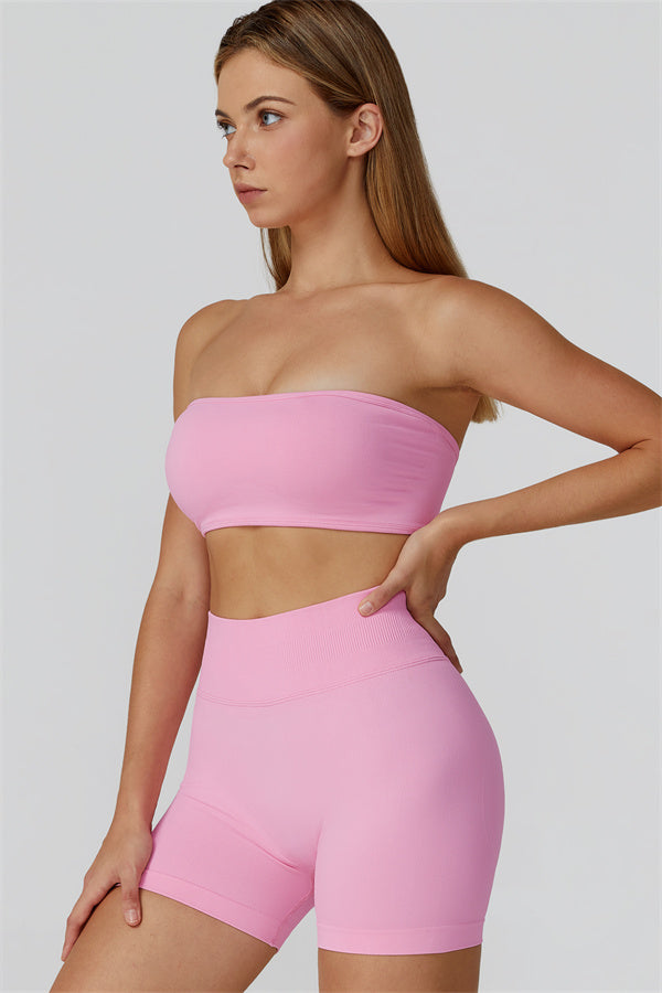 The Reign Sports Bra features a bandeau-style design that beautifully highlights your collarbones and enhances your curves. Its open-back cut offers breathability while sculpting the back lines. With removable pads, it eliminates the need for an additional bra, making it perfect for both workouts and casual wear. Crafted from seamless knit recycled fabric for a smooth, comfortable fit.