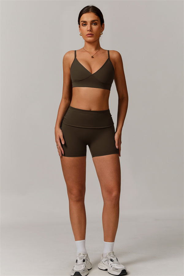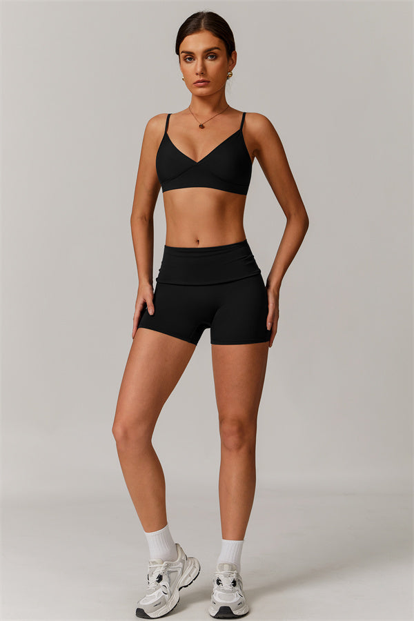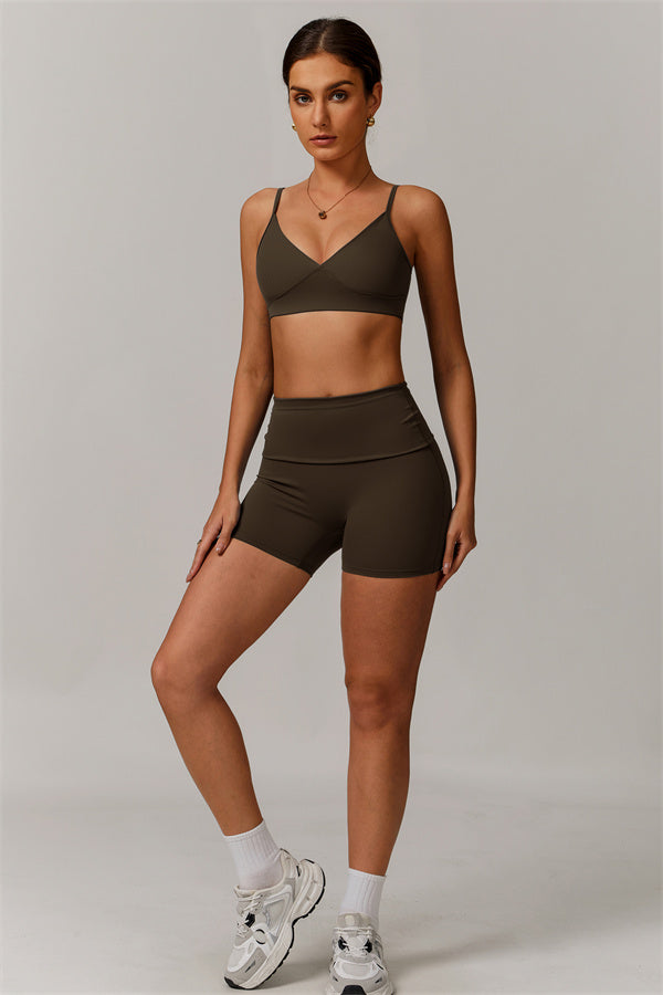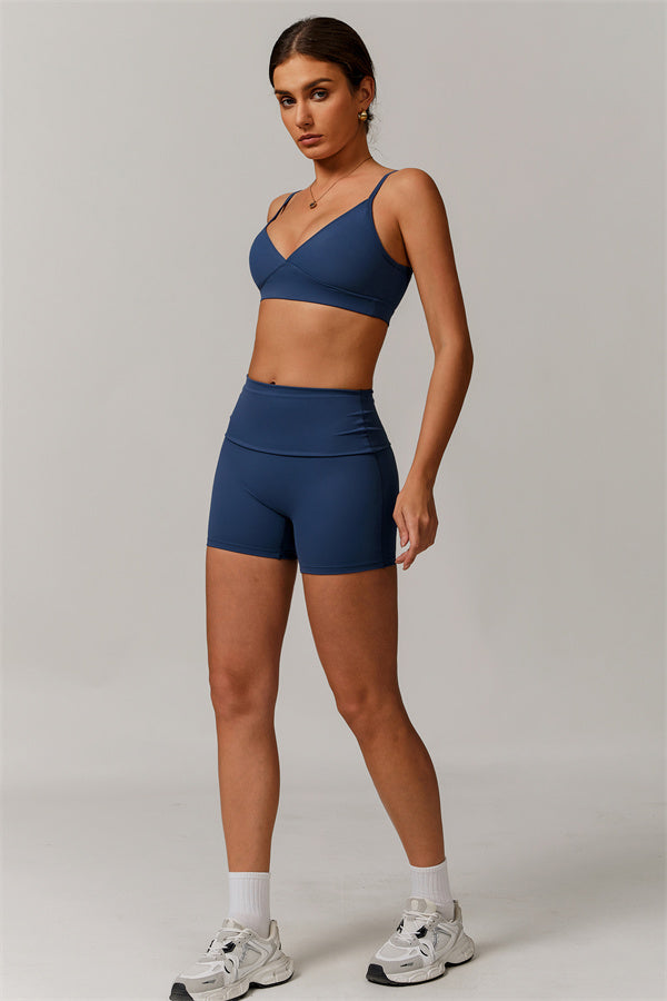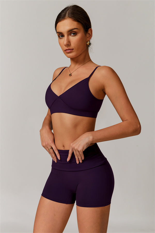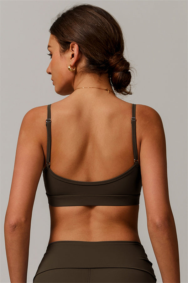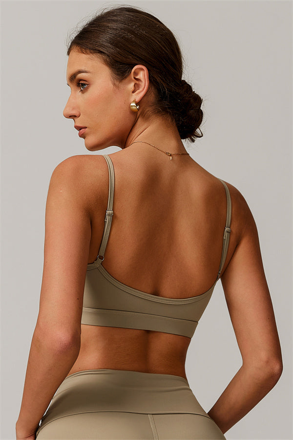 V-Neck Design: The V-neckline visually elongates the neck, creating a flattering and feminine silhouette. This design detail adds a touch of elegance to the sports bra, making it perfect for both athletic activities and casual wear.